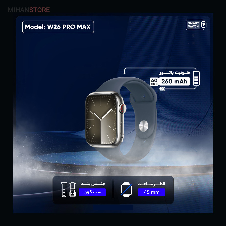 < فروشگاه اینترنتی پر از کالا - خرید پستی ساعت هوشمند و هندزفری بلوتوث W26 Pro Max