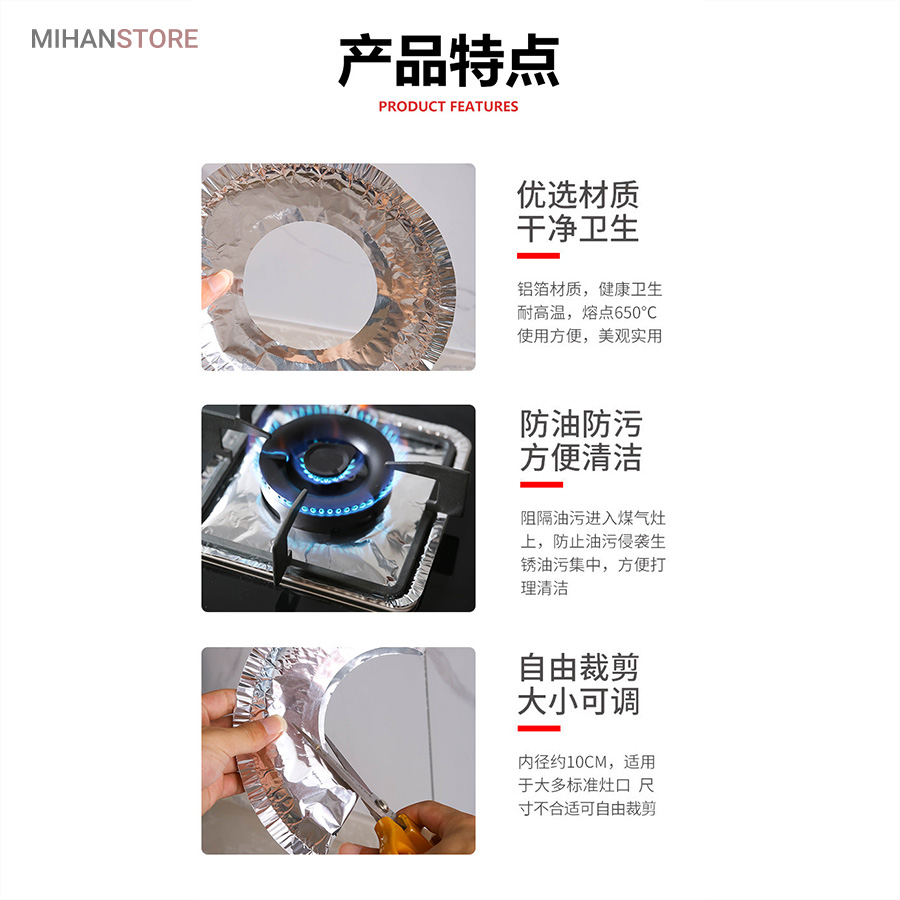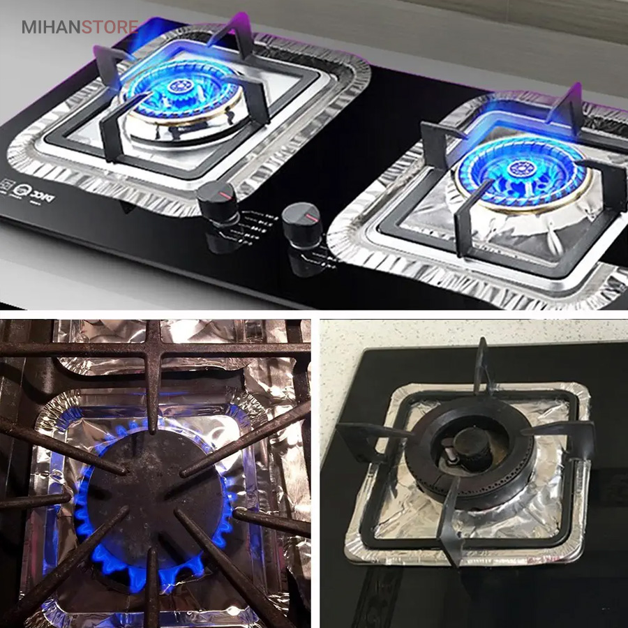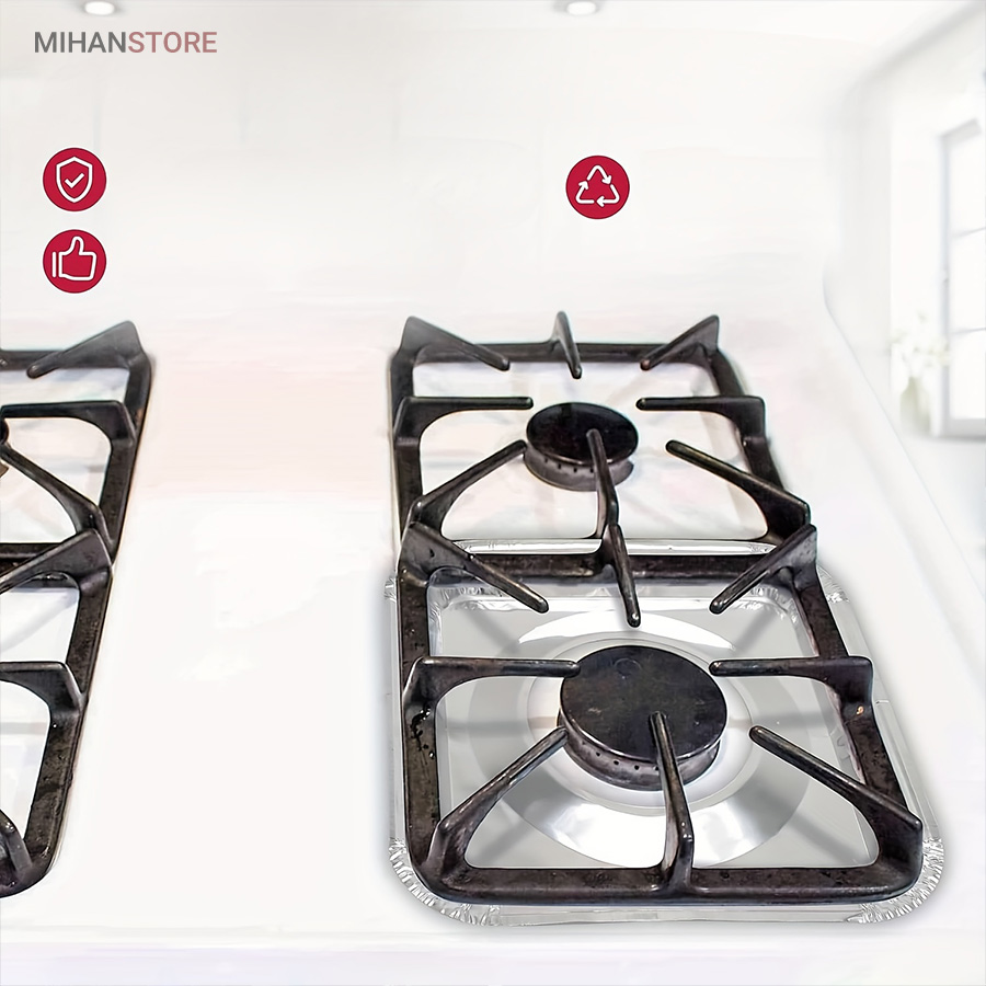 فویل اجاق گاز آلومینیومی یک محافظ ضروری برای اجاق گاز تا آن را از پوسته و لکه شدن ایمن نگه دارد و از ریختن چربی و دیگر محتویات قابلمه که برای صحفه روی گاز بسیار مضر است جلوگیری میکند این محصول غیر قابل اشتغال ، بی بو و غیر سمی میباشد و میتوان با یک دستمال نمناک ساده روی فویل را تمیز کرد ، زمانی که به نظرتان آمد که فویل محافظ کارایش کم شده به راحتی آن را جدا کرده و با فویل جدید جایگزین کنید ، فویل قالب بندی شده مناسب با انواع اجاق گاز میباشد ، پس بدون نگرانی تهیه و سلامت اجاق گازتان را تأمین کنید. برای استفاده از محافظ  فویل آلومینیومی به هیچ وجه نیاز به ابزار خاصی نیست ، زیرا به خوبی قالب بندی شده و شما برای استفاده فقط کافی است فویل را به گونه ای دور مشعل قرار دهید که شعله وسط فویل قرار گیر ، بعضأ دیده شده که از فویل های خام برای این کار استفاده میشود که نه تنها کارایی فویل قالبی را ندارد بلکه زیبایی گاز را هم از بین میبرد و نمای اشپزخانه را نیز نا زیبا میکنند ، پس از گذشت مدتی بهتر است فویل تعویض شود ، برای تعویض فویل هم نیاز به ابزار نیس و به راحتی میتوان فویل را برداشته و فویل جدید را جایگزین کرد.