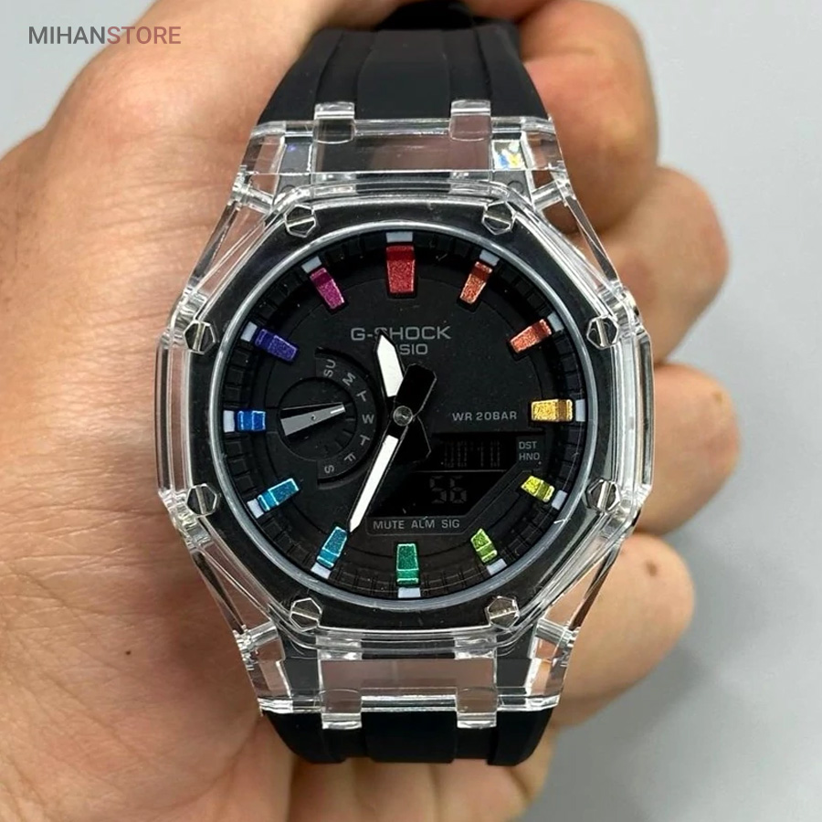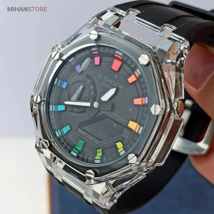یکی از بهترین ساعت هایی که کمپانی کاسیو تولید می‌کند و از زمانی که ساعت‌های کالکشن جی شاک به بازار معرفی شد ساعت جی شاک مدل GA2100 می باشد، کاسیو برای بار دیگر کاربران خود را به چالش کشید. مدل های جی شاک ، با ظاهر و طراحی مقاوم و منحصر به فرد خود، به محبوبیت بین المللی در بین جوانان رسید. ساعت‌هایی با قدرت ضربه‌پذیری بالا، مقاومت بالا در برابر آب و ضربات محکم که توانست نظر بسیاری از افراد را به خود جلب کند. ساعت مچی جی شاک دارای بند رابر مشکی خاص وموتور باکیفیت ژاپن وبدنه استیل وقاب شیشه ای جذاب است که بهترین انتخاب افراد خاص پسند می باشد.
