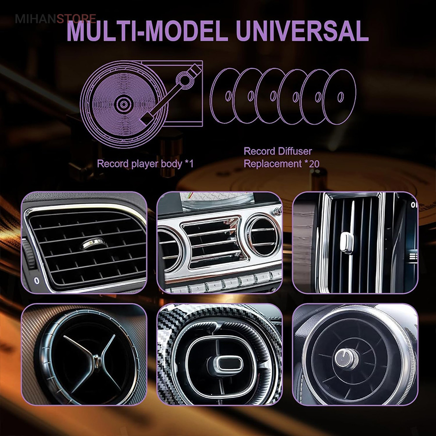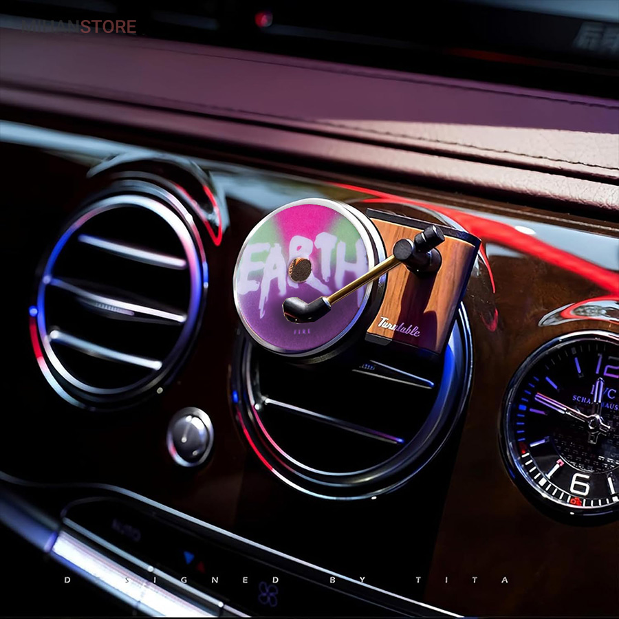 خوشبو کننده داخل خودرو یکی از وسیله های مورد نیاز داخل خودرو است که هم باعث تغییر بوی داخل خودرو میشود هم باعث زیبا تر شدن فضای داخلی خودرو میشود اگر این محصول تزیینی باشد . این محصول در دریچه کولر خودرو نصب میشود و طرح گرامافون دارد که حس نوستالژیکی به داخل خودرو میدهد . با ورود باد کولر یا بخاری به این محصول صفحه روی آن شروع به چرخش میکند همانند یک گرامافون قدیمی . داخل بسته بندی محصول قرص خوشبو کننده قرار دارد که روی صفحه مشکی وسط قرار میگیرد . بعد از اتمام پخش بوی آن میتوایند از هر عطر و ادکلنی که مورد پسند شما است روی آن اسپری کرده و مجدد استفاده کنید .